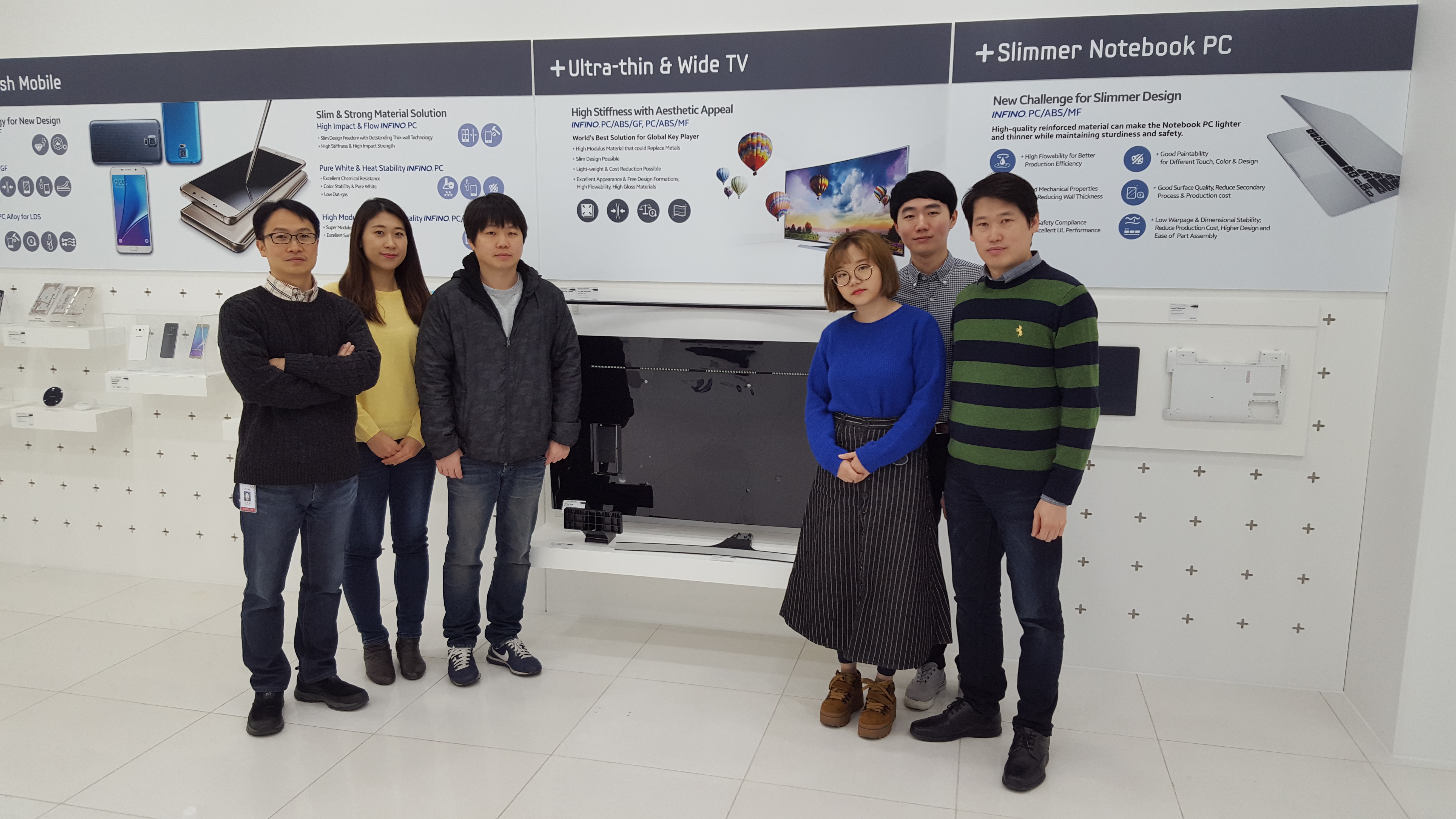![]() △왼쪽부터 롯데첨단소재 강태곤 수석연구원, 이수연 선임연구원, 이승갑·정다흰 연구원, 최기홍 선임연구원, 하동인 책임연구원. 최근 TV나 디스플레이 장비는 평면·곡면 등으로 그 모양이 다양해질 뿐만 아니라 크기(대각선 인치) 또한 커지고 있다. 이럴수록 디스플레이를 감싸는 외형 플라스틱(하우징) 제조 기술 또한 고도화해야 한다. 올해 첫 장영실상 영광은 롯데첨단소재가 개발한 '초슬림 디스플레이용 하이브리드 소재'에 돌아갔다. 이 회사는 지난해부터 삼성을 비롯한 국내외 TV 제조사에 이 하우징을 납품하고 있다. 이 하우징의 핵심은 TV 뒷면을 얼마나 깔끔하게 만드느냐에 달려 있다. 롯데첨단소재는 흡사 거울을 보는 것처럼 외관이 말끔한 하우징 제품을 만드는 데 주력했다. 롯데첨단소재가 개발한 제품은 기존 하우징 제품과 달리 플라스틱 안에 집어넣는 필러(충진재) 종류를 세 가지로 늘린 것이 특징이다. 플라스틱은 열에 의해 수축되거나 늘어나는 성질이 있기 때문에 이를 막고 TV 외관을 깔끔하게 유지하려면 플라스틱에 필러를 반드시 넣어야 한다. 기존 하우징 제품은 한 종류 필러만 쓰는 반면 롯데첨단소재가 개발한 제품은 침상형(바늘 모양)과 판상형 등 여러 필러가 동시에 투입돼 플라스틱 변형을 막는다. 2개 이상 필러를 집어넣었기 때문에 '하이브리드 소재'로 명명됐다. 특히 플라스틱(폴리카보네이트·PC)과 필러가 서로 만나면 화학반응이 일어나면서 가스가 발생하거나 변형이 생기는 등 부작용이 있을 수 있다. 따라서 롯데첨단소재는 이를 막아주는 반응형 첨가제도 별도로 투입했다. 이로써 탄생한 TV 뒷면 플라스틱의 광도(빛 반사 정도)는 무려 98%에 이른다. 사용자가 TV 뒷면을 바라보면 거울(광도 100%)처럼 자신의 얼굴을 확인할 수 있는 셈이다. 하동인 롯데첨단소재 책임연구원은 "하이브리드 필러와 반응형 첨가제 투입으로 외관이 깔끔한 무결점 소재를 만들 수 있었다"고 말했다. 플라스틱 사출 성형 과정에서 발생할 수 있는 제품 흠집 등의 문제도 없앴다. |