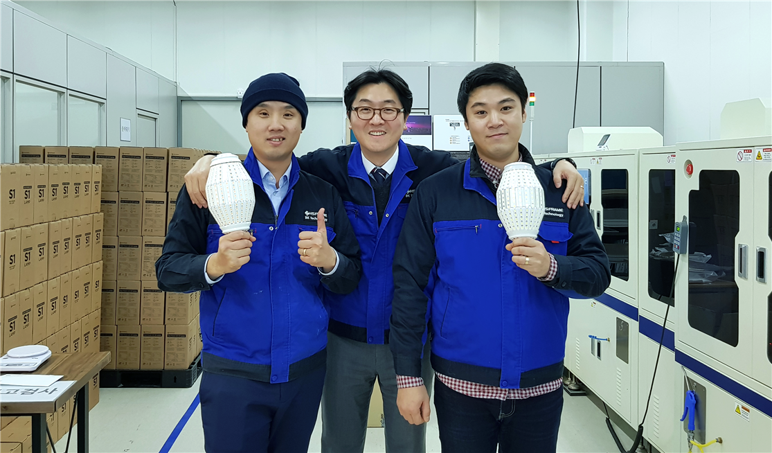 ![]() △왼쪽부터 강성남 팀장, 이동우 연구소장, 정규열 대리. 비케이테크놀로지가 개발한 '고출력 LED(발광다이오드)램프'가 2018년 8주차 iR52 장영실상을 수상했다. 고출력 LED램프는 공공 조명에 사용되는 고출력 램프다. 비케이테크놀로지에 따르면 가로등, 보안등, 공원등, 터널등에 고출력 LED램프를 사용하면 기존 램프와 비교했을 때 50~70% 에너지 절감이 가능하다. 수명이 기존 전등보다 10배 이상 길어 유지보수 비용도 큰 폭 절감할 수 있다. 이동우 비케이테크놀로지 연구소장은 "기존 고효율 LED램프와 비교했을 때 출력이 3배 이상, 효율은 130% 이상 각각 높으며 무게는 50%가량 줄였다"고 설명했다. 일반 LED 조명은 회로기판과 함께 열을 배출하는 '방열판'으로 구성된다. 회로기판과 방열판이 있어야만 열이 잘 배출되면서 오래 사용해도 뜨겁지 않은 LED 등을 만들 수 있다. 하지만 회로기판과 방열판 구조 때문에 한정된 크기의 램프 내에서 출력을 높이는 데 한계가 있었다. 이 때문에 지난 10년간 공공기관 실내 조명의 95%가 LED로 바뀌었지만 가로등과 보안등과 같은 공공 조명의 LED 교체 비율은 16.5%에 불과했다. 비케이테크놀로지는 이 같은 기술적 한계를 극복하기 위해 기존 LED 조명과 다르게 회로기판과 방열판을 따로 사용하지 않고 일체화하는 LED 신기술 프레임을 개발해 기존 고효율 LED 램프보다 에너지 효율성이 뛰어나고, 유지·관리 비용도 줄일 수 있는 고출력 LED 등을 생산하는 데 성공했다. 이 소장은 "지난해 12월 우수조달제품으로 지정돼 공공기관에 판매할 수 있는 길이 열려 올해 매출이 40억~65억원대로 급증하고 2019년에는 150억원에 달할 것"으로 기대했다. 올해 하반기에는 미국 시장 진출도 계획하고 있다. 이 소장은 "회로기판과 방열판을 사용하지 않아 생긴 공간을 최대한 활용하기 위해 앞으로 카메라, 인공지능(AI) 등도 LED 램프에 결합하는 시도를 해 볼 것"이라고 말했다. |