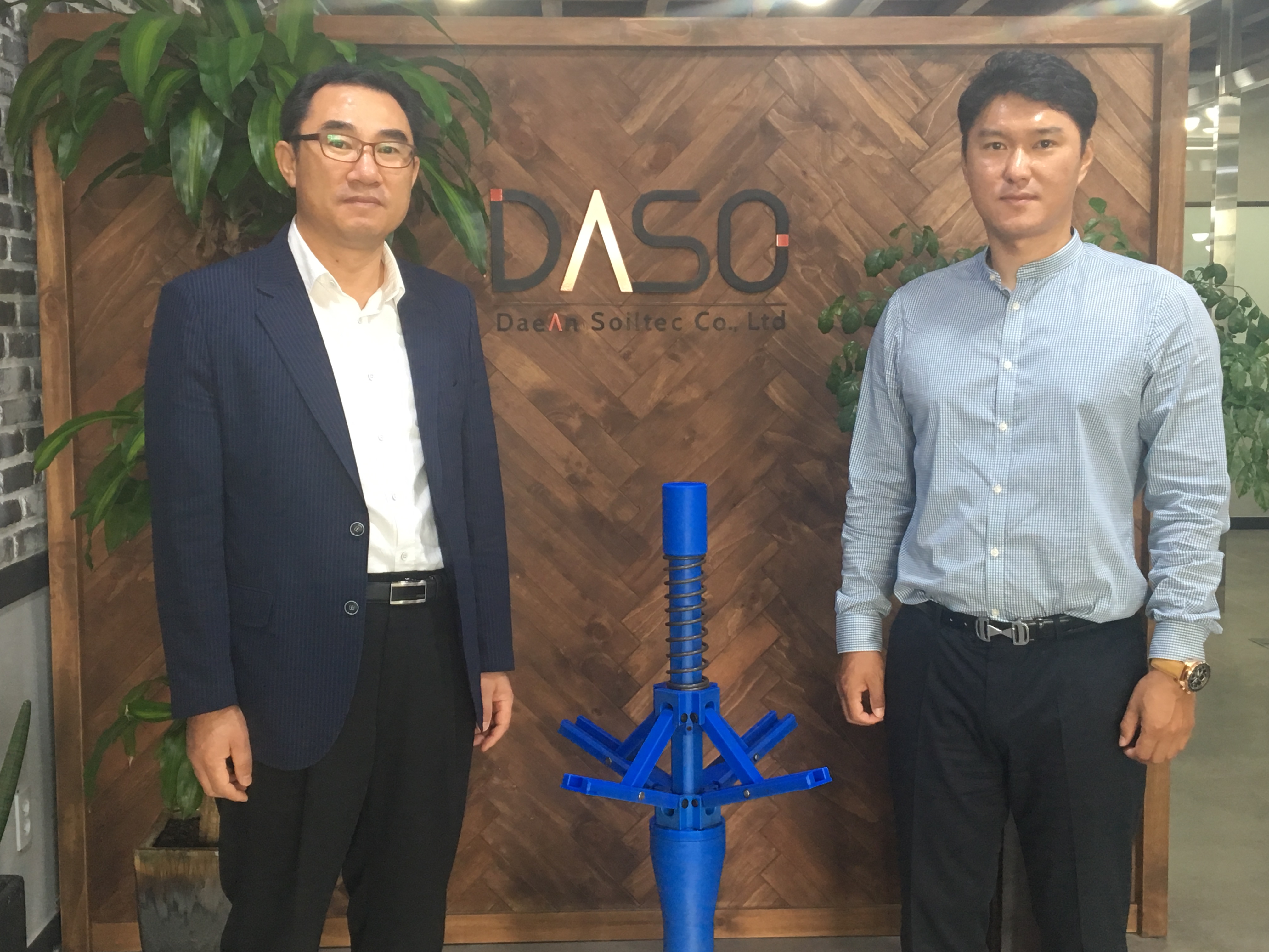 ![]() △왼쪽부터 김인철 연구소장, 양우진 차장 대안소일텍이 개발한 `확대굴착 교반장치를 이용한 정착장 확대개량형 연약지반 앵커공법(핫도그앵커 공법)`이 2018년 48주차 IR52 장영실상을 수상했다. 건물을 지을 때 대부분 `주차장`과 같은 지하시설을 만들어야 하는 만큼 흙을 파는 작업이 필요하다. 하지만 흙을 파기만 하면 옆에 있던 흙이 쓸려 내려온다. 이를 막기 위해 흙을 파는 곳에 벽을 세우는데 이를 `흙막이`라고 부른다. 흙막이를 그냥 두면 흙의 힘을 이기지 못하고 쓰러진다. 이를 막기 위해 흙막이에 길다란 철근과 같은 구조물을 넣어 흙벽에 꽂는 작업이 필요한데 이 같은 작업을 `앵커 공법`이라고 부른다. 지반이 약한 곳에는 많은 앵커공법을 적용해야 하는데 그만큼 비용이 많이 들고 공사 기간도 길어지는 문제가 발생한다. 이 때문에 연약한 지반에도 효율적으로 사용할 수 있는 앵커 공법 개발이 필요했고 대안소일텍 연구진은 `핫도그` 모양 앵커 공법을 개발했다. 핫도그앵커 공법은 먼저 기다란 빔을 흙벽에 밀어 넣는 것으로 시작한다. 여기까지는 기존 앵커 공법과 같지만 핫도그앵커 공법에 사용되는 빔은 끝 쪽에서 옆으로 펼쳐지는 장치가 나와 확대굴착을 하면서 마치 핫도그 형태처럼 변한다. 이치호 대안소일텍 기업부설연구소 부장은 "흙벽에 기다란 막대기를 넣은 뒤에 그 막대기 끝이 부풀어 오른다고 생각하면 된다"며 "땅속에 묻힌 막대 사탕을 빼는 것이 어렵듯이 이처럼 앵커 공법으로 박은 빔은 기존 공법과 비교했을 때 더 큰 힘에도 견딜 수 있다"고 설명했다. 대안소일텍에 따르면 기존 앵커공법이 버틸 수 있는 흙의 무게는 20t이다. 하지만 연구진이 개발한 핫도그앵커 공법은 최대 50t까지 견딜 수 있다. 이 부장은 "큰 힘을 버틸 수 있는 만큼 연약한 지반에서 공사를 할 때 기존보다 적은 빔을 박아도 공사 진행이 가능하다"며 "앵커 수량이 기존에 비해 45~55%가량 줄고 공사비도 20~35% 절감이 가능해져 생산성과 공사 속도를 높일 수 있다"고 설명했다. |