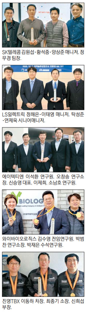 ![]() SK텔레콤 LS일렉트릭 와이바이오로직스 에이텍티엔 진영TBX가 올해 iR52 장영실상 기술혁신상을 수상했다. 상업화 성공 신기술을 개발한 연구원에게 주는 국내 최대 권위 기술상인 iR52 장영실상은 2014년부터 혁신적인 아이디어와 활동을 통해 우수한 기술 실적을 거둔 연구조직에 매년 한 차례 기술혁신상을 시상하고 있다. 이번에 혁신상을 받은 SK텔레콤 인공지능(AI) 액셀러레이터 프로젝트팀은 AI 반도체를 개발·상용화하는 조직이다. 2018년 SK텔레콤 인공지능 스피커 `누구(NUGU)`를 상용화한 데 이어 데이터센터에 즉시 적용할 수 있는 AI 반도체 `SAPEON(사피온) X220`도 개발했다. AI 반도체란 인공지능 서비스 구현에 필요한 대규모 연산을 초고속·저전력으로 실행하는 비메모리 반도체로 AI 핵심 두뇌에 해당한다. 정무경 SK텔레콤 팀장은 "반도체 칩 제조사가 아닌 AI 서비스 회사인 SK텔레콤이 직접 AI 반도체를 개발한 것은 큰 의미가 있다"며 "SKT가 만든 AI 반도체라는 점에서 경쟁력이 있다고 본다"고 강조했다. LS일렉트릭 전력솔루션연구소 친환경 GIS 태스크포스팀(TFT)은 친환경 가스절연 개폐장치(GIS) 개발을 위해 만든 조직이다. GIS는 발전소나 변전소에 설치되는 전력설비 보호장치로, 절연 성능이 우수한 가스를 이용하는 개폐장치다. 고장이 났을 때 과도한 전류를 신속하게 차단해 전력계통을 보호하는 역할을 한다. 과거에 사용하던 SF6 가스가 6대 온실가스로 지정돼 이용이 제한되면서 LS일렉트릭은 환경영향이 덜한 C4FN을 사용하는 가스절연 개폐장치를 개발했다. 탁성준 LS일렉트릭 시니어매니저는 "SF6 성능은 좋지만 지구온난화에 영향을 주는 게 한계"라며 "SF6를 C4FN 가스로 대체하면서 온실가스 발생량이 기존보다 99% 이상 감소했다"고 설명했다. 에이텍티엔 기업부설연구소는 택시·버스·도시철도 대중교통요금 결제기를 개발하고 서울 등 주요 도시에 공급해 시민들이 편리하게 대중교통을 이용할 수 있도록 기여한 공로를 인정받았다. 서울시 따릉이 자전거와 카카오 자전거 운영을 위한 단말기도 공급하고 있다. 에이텍티엔은 연구인력이 전체 직원 중 50% 이상을 차지하고 매출액 대비 연구개발비 투자 비율이 25%에 달한다. 오창송 에이텍티엔 연구소장은 "차량이 운전자에게 주변 교통정보를 실시간으로 알려주는 차세대 지능형 교통시스템(C-ITS) 분야로 기술개발 영역을 확장했다"고 밝혔다. 와이바이오로직스 항체신약연구소는 항암제 중에서도 효과가 뛰어나고 완치율도 높은 면역항암제 항체신약 개발에 매진하고 있다. 연구원 36명 중 석사 이상 전문인력이 78%에 이를 정도로 항체신약 연구 전문성이 뛰어나다. 차세대 면역항암제 기술인 T세포 이중항체 기술을 구축했는데 기존 이중항체 기술과 비교해 효능이 뛰어나면서도 독성이 낮다는 게 연구소의 설명이다. 연구소 내 태스크포스를 구성해 코로나19 진단·치료제 개발을 위한 항체 발굴에도 올인한 상태다. 진영TBX 기술연구소는 발전설비 부품인 터빈 블레이드를 개발했다. 터빈 블레이드는 터빈에 장착되는 날개 형태 부품으로 고온·고압에 견뎌야 하기 때문에 제작·가공 조건이 매우 까다롭다. 진영TBX 기술연구소는 진입장벽이 높아 수입품에 의존해야 했던 300㎿ 가스터빈 블레이드 국산화에 성공해 수입 대체뿐 아니라 원가 절감에도 큰 기여를 했다. 최종기 진영TBX 기술연구소장은 "가스터빈 블레이드뿐 아니라 스팀터빈에 적용되는 블레이드를 포함해 사업 영역을 확장할 것"이라며 "현재는 발전용 터빈 위주로 제품을 개발 중이지만 항공과 조선 등 터빈을 추진체로 활용하는 분야가 많다"고 설명했다. 마창환 한국산업기술진흥협회 상임부회장은 "장영실상 제정 이후 올해까지 우수 기술혁신 조직 39곳과 신기술 제품 1593개가 장영실상을 수상했다"고 말했다. |