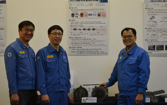 ![]() △왼쪽부터 서강, 하봉우, 김정우 수석연구원. 포스코가 개발한 `전기차 구동모터용 전기강판 셀프본딩 제품`이 2021년도 1주차 iR52 장영실상을 수상했다. 셀프본딩은 전기차 구동모터 모터코어에 들어가는 핵심 부품이다. 포스코 연구팀이 모터코어를 제작하는 과정에서 기존 용접 방법 대신 접착제로 접착하는 방식을 선택하면서 셀프본딩이라는 이름을 붙였다. 연구팀이 용접 대신 접착 방식을 택한 것은 기존 용접 방식으로 제작한 모터코어가 물리적 충격이나 열을 받으면 효율이 떨어지는 문제가 있었기 때문이다. 특히 전체 면적 용접이 불가능해 구동모터가 빠르게 회전하게 되면 용접되지 않은 부분에서 고주파 소음 문제도 발생했다. 포스코 연구팀은 "셀프본딩을 이용해 제작한 전기차 구동모터는 효율이나 진동·소음 특성이 우수해 전기차 주행거리 향상과 고속 모터에서 발생하는 진동·소음을 획기적으로 개선할 수 있다"고 설명했다. 포스코가 개발한 셀프본딩은 해외 철강사 제품과 비교했을 때도 탁월한 경쟁력을 갖췄다. 포스코 연구팀은 "유럽 중국 철강사 제품은 접착 성분 용액을 전문 용액사에서 구매해 사용하고 있지만 포스코는 자체적으로 개발했다"며 "경쟁사 대비 원가 경쟁력이 우수한 것은 이 때문"이라고 설명했다. 셀프본딩은 유럽계 자동차 3개사 4종 모델에 도입될 예정인데 국내외 주요 자동차회사와 모터회사를 대상으로 추가 계약을 진행 중이다. 연구팀은 "현재 셀프본딩 제품 원가 경쟁력을 더욱 높이기 위해 기술을 개발하고 있다"며 "자동차 구동모터 외 산업군 적용을 위한 연구개발도 진행 중으로 풍력발전기·가전용·산업용 모터에 활용할 수 있는 셀프본딩 제품을 개발할 것"이라고 전했다. |