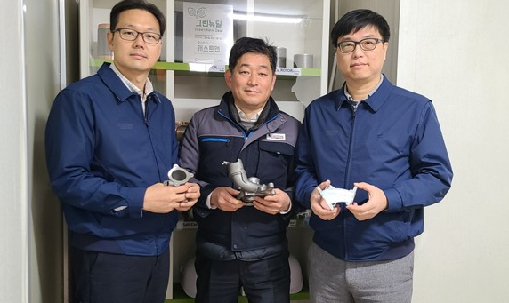 ![]() △현대차 이지용(왼쪽)·이철웅 책임연구원, 캐스트맨 홍기원 연구소장(가운데). 캐스트맨과 현대자동차가 개발한 `고강도 솔트코어를 적용해 고압 주조한 고품질 배기가스 혼합장치`가 2021년 8주차 iR52 장영실상을 받았다. 배기가스 혼합장치는 연비를 개선하기 위해 배기가스 재순환 시스템에서 냉각된 배기가스와 압축 혼합가스를 연소실로 공급하는 장치다. 배기가스 혼합장치는 주로 사형 주조 방식으로 내부 모양을 만들었기 때문에 무겁고 비용이 많이 소요됐다. 또 모래와 접착제 성분인 레진을 혼합해 굽는 과정이 필요해 분진이 발생하는 등 환경문제가 심각했다. 이 때문에 사형 주조 제조 공정 라인이 저임금 국가로 많이 이전됐고 대다수 배기가스 혼합장치를 수입에 의존해야 했다. 캐스트맨과 현대차는 이 같은 문제를 해결하기 위해 2013년부터 모래가 아닌 소금을 사용한 `솔트코어` 기술 개발을 시작했다. 솔트코어는 여러 가지 공업용 소금을 녹인 후 굳혀 부품 내부 모양을 만들 수 있다. 솔트코어는 독일과 일본 등에서 연구되던 기술인데 재료 강도, 응고 시 발생하는 변형 등으로 인해 국내에서 양산하기 쉽지 않았다. 비록 쉽진 않았지만 캐스트맨과 현대차는 고강도 솔트코어를 개발하는 데 성공해 지난해 2월 세계 최초로 배기가스 혼합장치에 적용했다. 이 장치는 현대차 카파엔진 1.5 터보 차저에 적용됐다. 솔트코어는 저가 알루미늄 합금 원재료를 사용하기 때문에 원가 절감과 경량화 측면에서 강점이 있다. 실제 캐스트맨과 현대차가 개발한 고강도 솔트코어를 사용한 공법은 기존 사형 주조 대비 원가를 최대 약 30% 절감하고 최대 25%가량 경량화할 수 있다. 또 공정 과정을 단순화해 제품 생산 시간을 단축할 수 있다. 사람이 일일이 작업할 필요 없이 설비 중심으로 생산할 수 있어 대량 생산이 용이하다는 강점도 있다. 고강도 솔트코어가 적용된 배기가스 혼합장치는 지난해 차량에 장착되기 시작했고, 올해 차량 15만대 이상에 탑재돼 12억원대 매출이 발생할 것으로 연구팀은 예상했다. 캐스트맨 관계자는 "솔트코어는 전기차 공조 시스템이나 수소차 모터 등에도 적용할 수 있다"며 "5년 내 매출 300억원 이상을 달성할 계획"이라고 덧붙였다. |