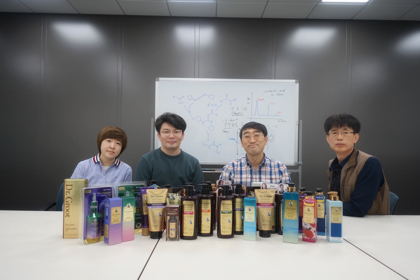 ![]() ▲왼쪽부터 LG생활건강 김시원 책임, 박현섭 책임, 송상훈 책임, 손성길 수석. 모발 강화·두피 보습을 위한 기능성 샴푸 '닥터그루트'를 개발한 LG생활건강이 2021년 20주 차 iR52 장영실상을 받았다. 닥터그루트는 모발과 두피의 각질 단백질에 효능이 있는 성분을 생체결합시키는 원리를 적용해 손상된 모발을 강화하고 두피에는 우수한 보습 효과를 제공한다. 샴푸의 주요 기능은 모발과 두피 오염 세정이다. 하지만 동시에 효과가 있는 성분들을 모발과 두피에 잘 전달해야만 한다. 이전까지 대다수 샴푸는 단순히 효능이 있는 성분들을 많이 첨가하거나 모발 표면이 음이온 전하를 갖는다는 점을 이용했다. 양이온 성분으로 일시적인 이온결합을 형성하는 방법을 통해 손상된 모발을 관리하는 연구에 집중해왔다. 하지만 이러한 연구 결과로 나온 제품은 효능 성분이 모발을 헹구는 과정에서 대부분 물에 씻겨 나간다는 단점이 있었다. 남겨진 성분 역시 유지 지속력이 떨어져 임시방편에 그친다는 지적도 받았다. 결국 소비자들은 효능 성분이 있는 샴푸를 사용하면서도 펌·염색과 자외선 등에 노출되며 손상 모발을 잘라내야만 했다. LG생활건강 모발손상회복 프로젝트·헤어뷰티연구팀은 '생명력이 없는 생체조직인 모발을 어떻게 건강한 상태로 되돌릴수 있는가'에 대한 고민을 해결하기 위해 화장품 산업을 넘어 다양한 유사 산업군의 기술을 조사·분석했다. 그 결과 손상된 모발과 두피 각질 단백질의 다양한 화학 결합 중 가장 강력한 결합 형태인 '공유결합'으로 효능 성분을 결합하는 방법을 찾아냈다. |