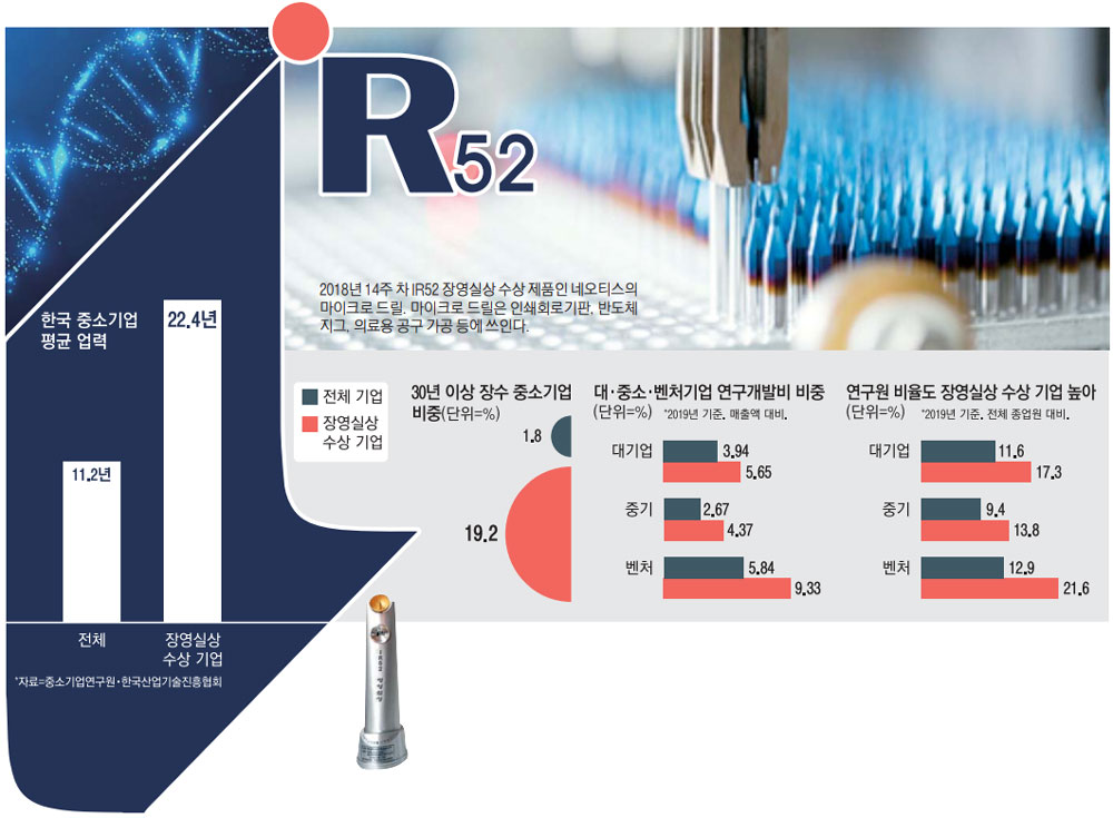| 제목 | [IR52 장영실상 30주년] 장영실상 탄 中企 "경쟁력은 R&D"…대기업 평균보다 비중 높았다 |