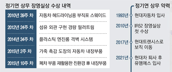 ![]() ![]() 장영실상, 실제 매출성과 중시 기업 연구에 방향성 제시 이젠 기업 연구개발 성과도 학계만큼 사회적 기여 커 장영실상 역대 최다 5회 수상 친환경 자동차용 소재 전문가 ◆ IR52 장영실상 30주년 ⑥ / 정기연 유엠에스 상무 인터뷰 ◆ "기업 소속 연구원은 학계 교수나 연구원에 비해 존중을 못 받는 게 현실이다. 점점 중요해지는 기업의 연구도 존중받는 사회가 됐으면 좋겠다." IR52 장영실상 역대 최다 수상자인 정기연 유엠에스 상무(사진)는 기업 연구원의 설움에 대해 이같이 토로했다. 정 상무는 2010년 첫 수상을 시작으로 2015년까지 장영실상을 총 5회 수상한 연구자다. 5번 모두 현대자동차 소속으로 장영실상을 받은 정 상무는 자동차 인테리어 분야에서 많은 연구 성과를 달성했다. 올해 30주년을 맞이한 IR52 장영실상은 국내 기업이 자체 개발한 신기술을 발굴하고, 기술 개발에 성과를 낸 연구원들의 공로를 인정하는 목적으로 탄생했다. 과학기술정보통신부가 주최하고 한국산업기술진흥협회(산기협)와 매일경제신문이 주관한다. 정 상무는 자동차 헤드라이닝용 부직포 스웨이드를 개발해 2010년 39주 차 장영실상을 처음 받았다. 친환경 자동차 내장 소재와 자동차 인테리어 디자인용 내장재 등으로도 장영실상을 받았다. 그는 섬유 외관 구현 경량 필러트림, 플라스틱 엔진룸 격벽 시스템, 가죽 촉감 도장 적용 내장재, 폐차 부품 재활용 기술 기반 내장부품 등을 개발해 4번 더 장영실상을 받았다. 정 상무는 "교수가 학계에서 발표한 연구 성과는 언론에도 자주 나오는 등 사회적 인정을 받지만 기업 연구는 파급 효과가 크더라도 주목받지 못해 상대적 박탈감을 느꼈다"며 "기업과 학교가 각자 잘하는 영역이 있으니 양쪽 모두가 존중받는 분위기가 형성돼야 국내 연구 문화와 환경도 더 발전할 수 있을 것"이라고 강조했다. 그는 "장영실상이 기업 연구를 인정해줄 때 가끔 느꼈던 설움을 풀어줬다"며 "가족과 동료가 내 연구를 알아줄 때 가장 힘이 나는데, 장영실상을 받아 주변에서 인정받은 게 큰 힘이 됐다"고 덧붙였다. 최근 기업과 학계의 연구가 점점 유사해지고 있는 점은 개선이 필요하다는 게 정 상무의 견해다. 정 상무는 "기업은 '혁신(Innovation)', 대학은 '창조(Invention)'를 해야 하는 게 기본"이라며 "기존 기술에 새로운 가치를 더해 발전시키는 혁신은 대학이 아닌 기업의 역할"이라고 강조했다. 그는 "하지만 최근엔 기업에서 하는 혁신 관련 연구와 정확히 겹치는 영역의 연구를 대학에서도 많이 하고 있다"며 "대학에선 거시적이고 기업에서 생각하지 못하는 새로운 것을 창조하는 연구를 해야 한다"고 밝혔다. 정 상무에 따르면 기업에서 기술을 개발하는 주기가 빨라지면서 연구원 개인이 주목받기 어려워졌다. 2~3년만 지나도 신기술이 도태되기 때문에 매년 새로운 성과를 내야 한다는 의미다. 개발 속도가 중요한 만큼 최근 기업에선 팀 위주 연구가 늘었다. 이런 상황에서 연구원 개인이 빛날 수 있는 유일한 길이 장영실상이란 게 정 상무의 설명이다. 그는 "자동차 산업은 모든 기술이 수많은 사람의 협업으로부터 나와 개인이 연구 성과를 인정받는 방법은 장영실상뿐"이라고 전했다. 매출, 사업성을 함께 평가한다는 점도 장영실상이 갖는 강점이란 게 그의 설명이다. 장영실상은 실제 양산으로 이어져야 받을 수 있어 권위가 높고, 연구원에게 방향성을 제시하는 의미가 있다는 것이다. 그는 "기업에서 선행 기술 개발을 10건 하면 그중 양산에 적용되는 것은 1건 정도"라며 "장영실상을 받았다는 것은 해당 기술이 기업에 큰 도움이 됐다는 의미"라고 말했다. 다만 정 상무는 장영실상에도 개선이 필요하다고 지적했다. 그는 "장영실상 수상자는 개발자 중 직급, 경력 순으로 이름을 올리게 되는 경우가 많다"며 "주관 기관에서 선정 기준을 정립하고 장영실상 수상자를 직접 정해주는 게 나을 것"이라고 말했다. 지난 2월 현대차를 떠난 정 상무는 6월 유엠에스에 합류했다. 유엠에스는 우레탄 폼 등 자동차 시트에 사용되는 소재를 개발하는 업체다. 정 상무는 "유엠에스는 새로워진 자동차 산업 환경에서 친환경 기술을 강조하는 기업"이라고 각오를 다졌다. [이종화 기자] [ⓒ 매일경제 & mk.co.kr, 무단전재 및 재배포 금지] |