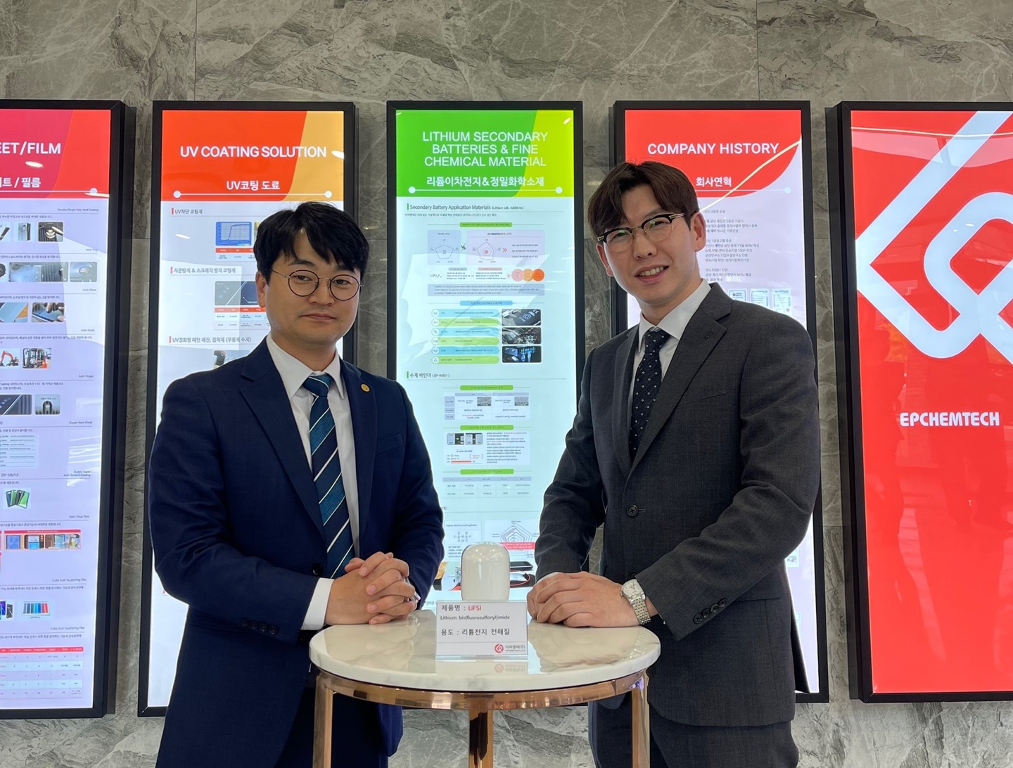 ![]() △이순호 상무이사(왼쪽), 이희진 연구소장. 대용량 배터리의 수요가 늘어나면서 상용 리튬이온배터리의 전극을 고용량 소재인 실리콘과 하이니켈로 대체하는 연구가 활발히 진행되고 있다. 하지만 실리콘 음극은 충전과 방전 때 부피가 3배 이상 늘었다 줄어드는 것이 반복돼 기계적 내구성이 약한 것이 단점으로 지적돼 왔다. 하이니켈 양극 또한 화학적 불안정성 때문에 대용량 배터리의 성능을 향상시키는 데 한계가 있어 왔다. 리튬 2차전지의 불안정성을 보완해주는 이피캠텍의 차세대 리튬 비스플루오로술포닐이미드(LiFSI) 전해질이 2023년 제34주 차 IR52장영실상을 수상했다. LiFSI 전해질은 2차전지의 핵심 소재 중 하나로 전해액에 들어가는 리튬염 전해질이다. 전해질과 양극, 음극, 첨가제에 따라 상호작용은 각기 다르게 나타나는데 LiFSI 전해질은 전지의 성능과 안정성을 향상시켜 주는 효과가 가장 뛰어난 것으로 알려졌다. 기존 2차전지 산업에서 널리 사용되고 있었던 리튬염 전해질인 LiPF6는 부식 등의 문제로 인해 전지 성능 개선에 있어 한계에 이른 상황이다. LiPF6는 물성이 전반적으로 우수하지만 열 안정성이 약하고 미량의 수분과도 반응해 분해된다. 이에 수분 함량을 20PPM 아래로 유지하기 위해 많은 비용이 소모되는 단점이 있다. LiFSI는 LiPF6, LiTFSI보다 이온전도도가 더 높고 열 안정성이 우수해 차세대 전해질 소재로 각광받고 있다. 이피캠텍의 LiFSI 전해질은 순도 99.95#PER#, 금속 함량 2PPM 이하, 수분 함량 20PPM을 자랑한다. 이피캠텍의 LiFSI 전해질 제조 기술에서 가장 큰 장점은 독자 정제기술 개발을 통한 폐수 처리 비용 절감이다. 불순물 금속 함량 유입을 최소화해 경쟁사보다 더 좋은 배터리 성능을 낼 수 있는 소재를 제조할 수 있다. 제조 공정은 정제·결정화·건조 3단계로 나뉘는데, 전체적인 제조 시간을 경쟁사보다 절반 가까이 줄였으며 수율도 높아 생산성 향상을 통한 가격 경쟁력을 확보했다. 이피캠텍은 양산된 샘플을 솔브레인, 엔켐, 동화EL, 덕산 등 국내 전해액 4개사에 제출해 제품 승인 절차를 진행하고 있다. 또한 원료 구매와 리튬염 첨가제(LiPO2F2) 판매를 통해 중국 내 전해액 회사들과 우호적 관계를 형성하고 있어 LiFSI 전해질 수출을 위한 해외 영업망 확대도 가능할 것으로 전망된다. 주최 : 과학기술정보통신부 주관 : 매일경제신문사 한국산업기술진흥협회 [강민호 기자] |