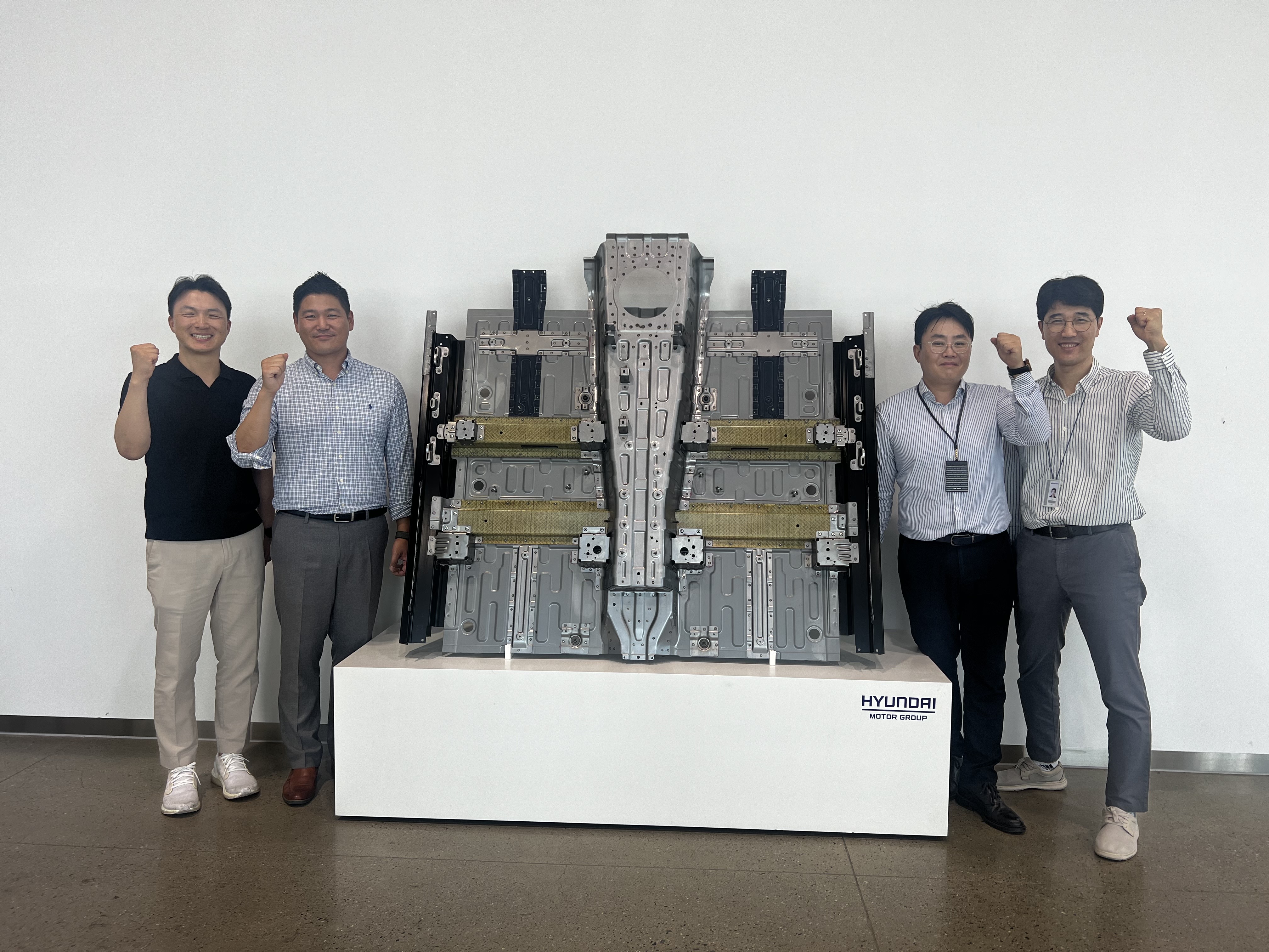 ![]() △왼쪽부터 성우하이텍 정윤성 책임연구원, 신성소재 신윤종 연구소장, 현대자동차 박상윤 책임연구원, 이건철 책임매니저. 성우하이텍과 신성소재, 현대차가 함께 개발한 전기자동차용 경량 고강성 탄소복합소재 시트 크로스 멤버가 2023년 제40주 차 IR52장영실상 수상 제품으로 선정됐다. 시트 크로스 멤버는 차량 시트 바닥 부분을 가로질러 접합되는 자동차 하부 구성 부품 중 하나다. 전기차 배터리 케이스가 흔들리지 않게 지지하며 측면 충돌이 발생하면 승객을 보호하는 역할을 한다. 전기차 보급 확대와 함께 업계에서는 시트 크로스 멤버 경량화를 위한 신소재 개발 필요성이 요구돼 왔다. 무게를 줄여 전기차 운영 효율을 높이기 위해서다. 그간 경량화를 위해 기존 금속재 대신 탄소섬유 복합재료를 사용하려는 시도들이 이어져 왔다. 그러나 대부분 적용 효과 대비 높은 부품 가격과 품질 관리 어려움 등으로 양산이 쉽지 않았다. 시트 크로스 멤버 역시 같은 문제를 겪었다. 성우하이텍과 신성소재, 현대차 공동 연구팀은 탄소섬유 복합재료를 활용한 시트 크로스 멤버 양산에 인발 공정을 적용했다. 인발 공정은 열을 가해 큰 구조체를 말랑하게 만든 후 빠른 속도로 당겨 복잡한 구조체를 뽑아낸다. 연속으로 많은 복합재료를 생산케 해 대량 생산에 유리하다. 박상윤 현대차 경량소재연구팀 책임연구원은 "인발 공정은 디자인 자유도 측면에서 타 공정 대비 불리하나 소재비나 금형비, 생산 속도 측면에서 효율성이 높다"고 설명했다. 실제 BMW i3나 i8 프레스 성형공법 등 기존 해외에서 적용 중인 공정 대비 효율성이 상대적으로 높다는 분석이다. 기존 복합재료 대량 생산 공법 대비 생산성과 제조 원가 측면에서 상대적으로 유리한 것으로 나타났다. 인발 공정은 보통 건축 공법으로 많이 쓰여 왔다. 연구팀이 탄소섬유 복합재료 생산에 새로 적용한 것이다. 기술 업그레이드도 거쳤다. 인발 공정에 별도의 수지 주입기를 적용했다. 수지 주입기는 고분자 수지를 주입하는 기계로, 고분자를 주입하면 복합재료의 강도를 더 높일 수 있다. 연구팀은 "시트 크로스 멤버는 자동차 안전성에 직접적으로 영향을 미치는 부품이기에 설계 신뢰성 확보뿐 아니라 소재와 공정 편차에 따른 데이터들을 기반으로 품질 관리에 공을 들였다"며 "범퍼 빔과 같은 자동차 부품에도 인발 공정을 확대 적용할 계획"이라고 밝혔다. 주최 : 과학기술정보통신부 주관 : 매일경제신문사 한국산업기술진흥협회 [고재원 기자] |